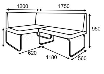 Кухонная угловая скамья на металлокаркасе Dinetti KT-3 Размер 1200х1750х950h Цвет обивки и металлокаркаса на выбор Представленный на изображении стол можно также приобрести + подобрать стулья None