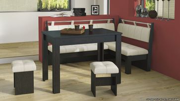 Кухонный уголок Омега Цвет Дуб белфорт / Кожзам Лён коричневый, Дуб белфорт / Кожзам Лён бежевый, Венге цаво / Кожзам Лён бежевый, Венге цаво /Кожзам Лён бежевый В состав входят: стол, угловая скамья и два табурета Размеры скамьи 1134153480 Размеры стола 1000600740 Размеры табуретов 330330430 Удобный обеденный стол из этого комплекта выполняется в цвете Дуб Белфорт или венге цаво, что в сочетании с цветом мягкой обивки Коричневый Лён или лен бежевый выглядит особенно элегантно и респектабельно. В гарнитур входят угловая скамья с высокой спинкой и с таким же как у парных табуретов мягким сиденьем, но при необходимости вы можете дополнить его другими модулями. None