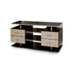 Ширина (мм): 1200Глубина (мм): 420Высота (мм): 620Тумбочка под телевизор для спальни или гостиной комнаты с выдвижными ящиками и полками для аксессуаров None