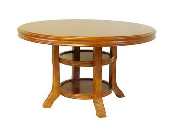 Круглый обеденный стол. Выполнен из дерева, тонированного в цвет "светлая вишня". Подстолье и нижняя полка диам.550мм