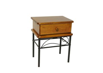 Прикроватная тумбочка. Изготовлена из черненого металла и дерева. Встроенный ящик