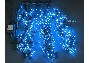 Rich LED 3 нити по 20 м, с контроллером, цвет: синий. Черный провод.