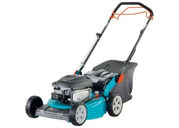 Бензиновая газонокосилка GARDENA 46 VD оснащена высококачественным двигателем Briggs & Stratton, а также встроенными системами кошения и сбора травы для надежной и эффективной стрижки газонов. Задний привод с регулируемой скоростью гарантирует легкое кошение на больших площадях или на неровной почве. Газонокосилку можно использовать с травосборником либо как устройство для мульчирования. При кошении с применением механизма мульчирования срезанные части травы измельчаются и равномерно распределяются по газону в качестве естественного удобрения. Высота стрижки легко устанавливается на нужное значение и отображается на хорошо заметной шкале. Бензиновая газонокосилка GARDENA снабжена множеством элементов, которые делают Вашу работу более простой и приятной. Так, косилка имеет функцию очистки с подачей воды, что позволяет с легкостью очищать режущую деку с помощью Original GARDENA System. Эргономичный корпус и резиновое покрытие рукояток облегчают управление газонокосилкой, так что Вы сможете работать без усталости. Колеса на шарикоподшипниках со специальным профильным рисунком обеспечивают плавность хода по траве и особый комфорт при управлении. Практичная функция: благодаря складной ручке газонокосилка после завершения работы легко складывается, что позволяет экономить место при хранении. ДвигательПроизводитель двигателя Briggs & Stratton Модель двигателя Серия 550 Рабочий объем цилиндра, куб. см 158 см³ Номинальная мощность на рабочих оборотах 2,1 кВт @ 2900 об./мин Объем топливного бака 0,9 л Система приводаПринцип движения Задний привод Режущая декаШирина стрижки 46 см Высота стрижки, мин-макс 30 - 80 мм Количество положений высоты стрижки 6 Регулировка высоты стрижки Центральная Рекомендуемая площадь газона 800 м² +/-20% ОборудованиеОбъем травосборника 53 л ГабаритыРазмер колес, передних/задних 190 мм/210 мм / 7,48 дюйм/8,27 дюйм Масса 32,1 кг Звуковые и шумовые характеристикиУровень шума измеренный: 96 дБ (A), гарантированный: 96 д