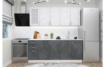 Кухня МДФ Эко — необычайно стильное и элегантное решение для обустройства кухонного пространства. В ней в равной степени сочетается шик и строгость, лаконичность, сдержанность и простота. Материал корпуса ЛДСП Белого цвета, фасадов МДФ Бетон снежный/Бетон графит, столешница Антарес толщиной 26 мм. В составе комплекта: •стол под мойку 800 2 двери (800х525х820) без столешницы, рекомендуемый размер накладной мойки 800х600,