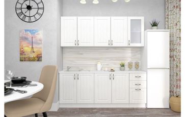 Кухня МДФ Ромб — это домашний уют, близость к природе, романтизм, мечтательность. Она подарит своему хозяину ощущение свободы, лёгкости, вдохновит на приготовление вкусных блюд, а время, проведённое в комфортных условиях кухни, будет проходить быстро и незаметно. Фасады кухни украшены фрезеровкой с геометрическим рисунком "Ромб". Это усиливает эстетическое восприятие интерьера и хорошо вписывается в общую композицию. Материал корпуса ЛДСП Белого цвета, фасадов МДФ Ясень патина, столешница Антарес толщиной 26 мм. В составе комплекта: •стол под мойку 800 2 двери (800х525х820) без столешницы, рекомендуемый размер накладной мойки 800х600,