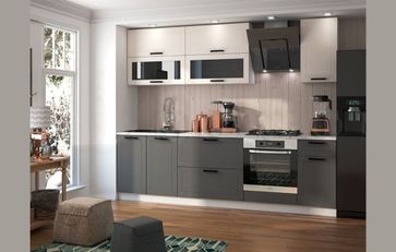 Кухня МДФ Монако — современная мебель для кухни с актуальными матовыми фасадами Софт. Настоящая находка для людей, любящих минимализм и простоту интерьера. Корпуса модулей выполнены из ЛДСП Белый, фасады МДФ, столешница 26 мм Антарес. В составе комплекта Монако 2600: •стол мойка 2 двери 600 (600х600х820); •стол 2 ящика ШН2ЯГ800 (800х600х846); •стол под духовку ШНВТ600 (600х600х820); •стол 1 дверь / 1 ящик ШН1Я400 (400х600х846); •шкаф 2 подъемные двери стекло ШВГС800 (800х300х718) — 2 шт.; •шкаф 1 дверь ШВ400 (400х300х718); • столешница 800+400. None Страна производства: Россия Есть доставка.