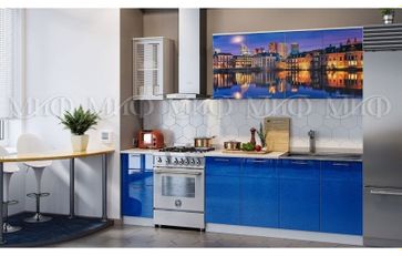 Кухня МДФ с фотопечатью Гаага — это компактная модель, выполненная в неизменном качестве. Красочный рисунок с изображением панорамы ночного города и цветовое сочетание фасадов наполнят кухню ярким светом, который будет придавать хорошее настроение каждый день! Новейшая технология фотопечати позволяет наносить любой рисунок на створки по замыслу художника. Такой принт не смывается и за кухней можно ухаживать как за обычной мебелью, производя уборку влажной тканью со щадящими моющими средствами. Модули изготовлены на каркасе ЛДСП белого цвета, фасады МДФ в декоре синий металлик (низ) / фотопечать Гаага (верх), стекла рифленые, ручка скоба. Кухня предлагается в готовых решениях длиной 1600, 1700, 1800 и 2000 мм. Комплектацию и стоимость желаемого варианта уточняйте у консультантов магазина. Цена указана за готовый комплект Гаага длиной 2000 мм. Столешница у каждого модуля своя (кроме мойки). None Страна производства: Россия Есть доставка.