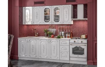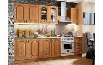 Кухня МДФ Лиза 2 — нежная, украшенная вензельными рисунками на фасадах, вполненная в классическом стиле мебель для кухни. Арочные фасады имеют глубокую фрезеровку, стекла в витринах также декорированы рисуном. В составе комплекта: •стол-мойка 800 2 двери (800х600х850); •стол с полкой 800 2 двери (800х600х850); •стол 3 ящика 400 (400х600х850); •шкаф с полкой 800 2 двери (800х300х720); •шкаф с полкой 800 2 стеклодвери (800х300х720); •шкаф с полкой 400 1 дверь (400х300х720). Возможен заказ гарнитуров Лиза 2 длиной 1600, 1700, 1800 мм. None Страна производства: Россия Есть доставка.