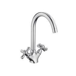 ---Описaние-Заказать установку-Общая информация--Коллекция-BACH Dira-Характеристики--Тип излива-Высокий-Тип смесителя-Поворотный-Выдвижная лейка-Нет-Установка-На мойку-Тип управления-Двухзахватный-Термостат-Нет-Донный клапан-Нет-Гигиенический душ-Нет-Упаковка--Размер упаковки (ВхШхД), см-38 x 6 x 20 см, вес 1 кг-Информация о производителе--Производитель-DENIQUE s.r.o.-Страна производства-Чехия- None