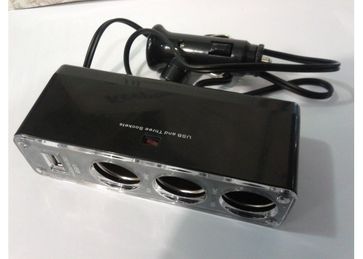 Разветвитель на 3 прикуривателя и USB выход.Универсальный удлинитель - разветвитель для сети 12/24В.Возможность подключения одновременно нескольких приборов.Для автомобилей с напряжением бортовой сети 12/24 В.Имеет защиту от короткого замыкания – плавкий предохранитель в корпусе штекера;Надежно фиксируется в гнезде прикуривателя;Современный дизайн;Универсален для всех автомобилей.