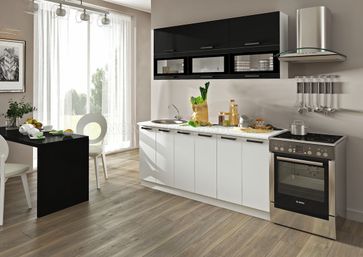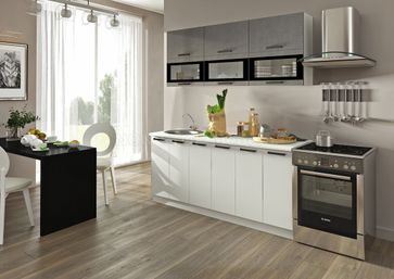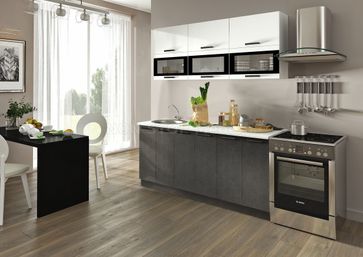 Кухня Фиджи прямая с витринами1800мм (модульная) Размер 1800х600х2170 Цвет МДФ фасада белый, графит, бетон, лайм, оранж, скай Цвет единой столешницы с пластиковым покрытием 26мм (входит в стоимость) или толстой 38мм влагостойкой столешницы (за доплату) на выбор Стекло с шелкографией и полированной еврокромкой Ручки и фасады с Anti-scrath покрытием Цена указана за комплект на изображении Размер, комплектацию, компоновку (прямая, угловая, п-образная) можно менять в пределах элементов серии и приобретать по отдельным элементам в любом количестве и сочетании + возможны нестандартные компоновки + возможные различные изменения нашими мастерами при установке (при необходимости) Представлен один из множества вариантов компоновок - комплектации и компоновки с размерами не ограничены None