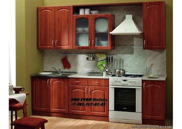 Кухня Классик 2600мм с карнизом Фасады МДФ ПВХ, ЛДСП с АБС кромкой металлик - на выбор Возможно изменить комплектацию, приобретение по отдельным предметам Вы можете составить композицию на ваше усмотрение, по размерам и наполнению из элементов представленных на изображении №2-3 стоимость элементов уточняйте по телефону, через форму обратной связи или почту nonstopmebel@yandex.ru Ширина: 2600 Глубина: 600 Высота: 2075 Кухня изготовлена из ДСП толщиной 16 мм, покрытого защитным слоем ламинатной пленки, фасады из МДФ. Комплектуется фурнитурой HETTICH (Германия), благодаря которой дверцы открываются без усилий, а закрываются мягко, на протяжении всего срока службы кухонного гарнитура. Фасады шкафов могут быть закрытыми, или с матовым стеклом. В шкафах полки выполнены из ЛДСП. Специальные механизмы, которыми комплектуются шкафы, позволяют регулировать высоту шкафа при навеске. Выдвижные ящики этой кухни на металобоксах, которые ездят роликами по металлическим направляющим, что способствует легкому выдвижению ящиков. Съёмная передняя царга, закрывает от посторонних глаз, регулируемые по высоте ножки столов. Продается поэлементно. В стоимость гарнитура входит столешница. Мойка и сушка с поддоном, не входят в стоимость гарнитура. Столешница - 26 мм None