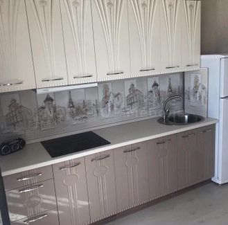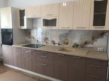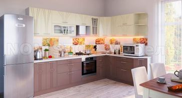 Кухня Лира угловая 3000х1900мм (модульная) Размер 3000х1900х2170h Цвет МДФ фасадов ваниль / латте Столешница 26мм (входит в стоимость) или 38мм толстая влагостойкая (за дополнительную плату) пластик на выбор Стекло - пескоструйный рисунок Комплектацию, размер и компоновку (прямая, угловая и п-образная кухня) можно менять + возможны нестандартные компоновки + возможны изменения отдельных модулей силами наших мастеров при установке None