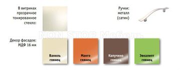Кухня Сандра 2800 (модульная) Размер 2800х600х2170 Фасад Сандра МДФ 16 мм Манго глянец, Капучино глянец, Эвкалипт глянец, Ваниль глянец Декоры столешниц: на выбор по запросу В витринах прозрачное тонированное стекло Ручки: металл (сатин) Комплектацию и размер можно менять на ваше усмотрение None