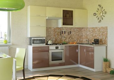 Кухня Сандра угловая 2400х1400 (модульная) Размер 2400х1400х2170мм Фасад Сандра МДФ 16 мм Манго глянец, Капучино глянец, Эвкалипт глянец, Ваниль глянец Столешницы 38мм (толстые) на выбор В витринах прозрачное тонированное стекло Ручки: металл (сатин) Комплектацию и размер можно менять на ваше усмотрение None