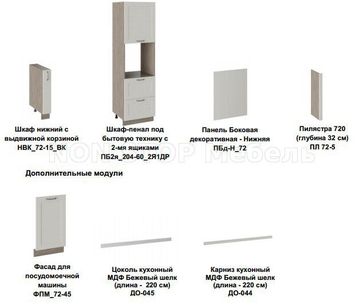Кухонный гарнитур Одри №1 (модульный) Цвет фасада серый шелк, бежевый шелк Цвет корпуса дуб сонома трюфель Цвет влагостойкой толстой 38мм столешницы на выбор Размеры (Д×ГхВ): 2550×582х2200 Размер, комплектацию, компоновку можно менять в пределах элементов серии + возможны незначительные изменения самостоятельно или нашими мастерами в процессе установки Кухня «Одри» - это удивительное сочетание многовековых традиций и достижений технического прогресса. Она идеально подойдет для тех людей, которые склоняются в пользу классического стиля и, в тоже время, любят удобство и функциональность современного дизайна. Обратная сторона фасадов МДФ облицована так же, как и каркасы, декором «Дуб Сонома» в цвете «Трюфельный», поэтому любой модуль из новой коллекции будет эффектно выглядеть не только снаружи, но и изнутри. Необычная фрезеровка фасадов выглядит строго и при этом нарядно, что придает кухне неповторимый шарм. Для покрытия фасадов используется инновационный материал пленка ПВХ, имеющая бархатную суперматовую поверхность с уникальным покрытием ANTISCRATCH, обеспечивающим долговечность готового изделия и приятные тактильные ощущения. Одним из основных акцентов, делающих кухню стильной и современной, являются металлические ручки цвета «Брашированное старинное олово». Нижние шкафы с ящиками имеют различные варианты раздвижения ящики на метабоксах и на тандембоксах немецкого производства. Поэтому любой покупатель сможет подобрать наиболее подходящий ему вариант по комфортности и стоимости. «Тандембокс» представляет собой ящик, у которого днище и задняя стенка изготовлены из ДСП, а боковые стороны имеют металлическую стенку с лаковым покрытием, что позволяет избежать царапин. «Тандембокс» снабжен направляющими, спрятанными в боковую стенку, которые выдерживают гораздо большую нагрузку чем «Метабокс». «Тандембокс» снабжен встроенным механизмом автоматической доводки, благодаря которому ящик закрывается мягко и бесшумно. Даже полностью нагруженные ящики впечатляют плавным ско
