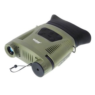 Бинокль ночного видения. Увеличение оптическое 3.5x, цифровое 1х…2.6х. Дистанция обнаружения 300 м. CMOS сенсор 1/4” цветной 640x480 пикс, LCD-дисплей TFT 320x240 пикс. Длина ИК волны 850 нм. Возможность записи фото и видео. Карта micro-SD, шейный ремень, кейс для хранения в комплекте. None