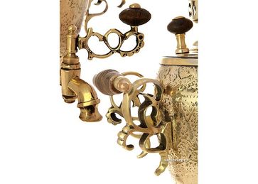Антикварный латунный самовар редкой формы и литража. Произведен в конце XIX века. Отреставрирован тульскими мастерами в 2012 году и готов к эксплуатации. None
