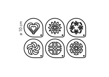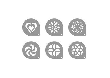 Прекрасно подходят для стильного украшения пены на капучино; выбранный трафарет подержите близко к пене и слегка посыпьте мелко размолотой корицей или какао. С колечком для удобного обращения и подвешивания. Изготовлены из первоклассной стойкой пластмассы, пригодны для посудомоечной машины.