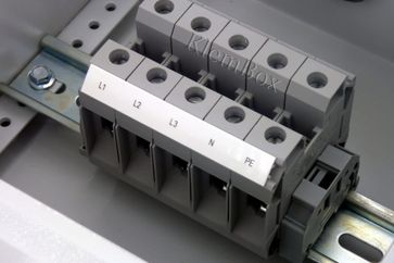 5 клемм Phoenix Contact обеспечивают удобный монтаж проводников сечением от 1,5 до 50мм2. Максимальный ток каждой клеммы 150А при использовании проводников с максимальным сечением 50мм2, рабочее напряжение 1000