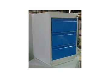 Покрытие тумб порошково-полимерное, каркас светло-серого цвета, ящики и дверцы синие.