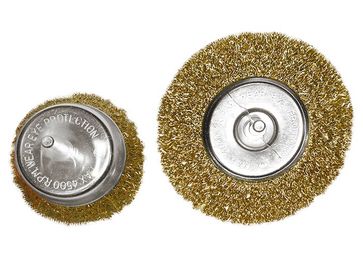 Набор металлических щеток изготовлен из стальной проволоки. Латунное покрытие. Применяется для очистки металлических поверхностей от ржавчины и грязи в щадящем режиме. None Страна производства: Китай
