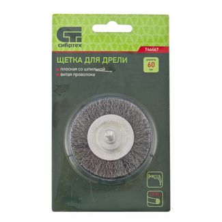 - Щетка для дрели, 60 мм, плоская со шпилькой, витая проволока СИБРТЕХ по выгодной цене 49 р. руб.;