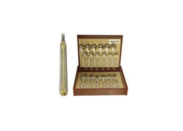 Производство - Herdmar (Португалия). Приборы матированные с позолотой. Размеры шкатулки: 34,5 х 27 х 6 см. Набор на шесть персон. Материал: сплав стали с добавлением 18% хрома и 10% никеля, позолота. Цвет: серебристый. В набор входят: ножи, вилки, столовые и чайные ложки. В основе производства данных столовых приборов лежат характеристики, которые позволяют сохранить идеальный внешний вид и качество полировки при многократном использовании. Подарочная шкатулка из тонированного дерева. Продаем в кредит. Более 15 видов оплаты, WM, ЯД. Можно купить без предварительного заказа. Возможен самовывоз. Есть доставка. Доставка: 350.0RUR