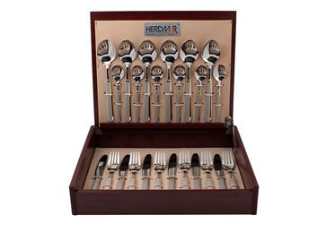 Для изготовления столовых приборов HERDMAR используются Хромоникелевые сплавы 18% хрома и 10% никеля. Стильный дизайн, толщина изделия, качество полировки, высокопрочность материала столовых приборов HERDMAR в сочетании антикоррозийными свойствами являются основными характеристиками хороших столовых приборов. Не требуют особой осторожности при эксплуатации, Cтоловые приборы HERDMAR можно мыть в профессиональных посудомоечных машинах.