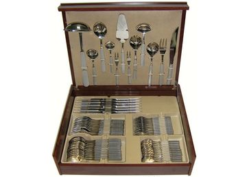 Столовый набор (72 предмета) Серия: QUEEN Материал: металл, матированный c декорированием Входит 72 предмета: – 12 Столовый Нож – 12 Столовая Вилка – 12 Столовая Ложка – 12 Десертная Вилка – 12 Чайная Ложка – 1 Ложка Разливная – 1 Сервировочная Ложка – 1 Ложка для Сахара – 1 Сервировочный Нож для Мяса – 1 Сервировочная Вилка для Мяса – 1 Ложка для Соуса – 1 Лопатка для Торта – 1 Набор для Салата – 2 Нож для Масла – 1 Нож для Сыра Для изготовления столовых приборов HERDMAR используются Хромоникелевые сплавы 18% хрома и 10% никеля. Стильный дизайн, толщина изделия, качество полировки, высокопрочность материала столовых приборов HERDMAR в сочетании антикоррозийными свойствами являются основными характеристиками хороших столовых приборов. Не требуют особой осторожности при эксплуатации, Cтоловые приборы HERDMAR можно мыть в профессиональных посудомоечных машинах. Продаем в кредит. Более 15 видов оплаты, WM, ЯД. Можно купить без предварительного заказа. Возможен самовывоз. Есть доставка. Доставка: 350.0RUR
