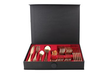 Herdmar Rocco OLD gold 24 предмета - на 6 персон. Безупречное качество, изысканный и практичный дизайн, аккуратная полировка делают эти столовые приборы украшением любого стола. Такой набор может служить эксклюзивным подарком, отличающимся безупречным и аристократическим вкусом. Набор изготовлен из нержавеющей хромоникелевой стали (10% никеля, 18% хрома) с высокими гигиеническими показателями позволяет столовым приборам долго сохранять свой первоначальный внешний вид даже при регулярном мытье и интенсивном использовании. Состав набора: ложка (6 шт.) вилка (6 шт.) нож столовый (6 шт.) ложка чайная (6 шт.)