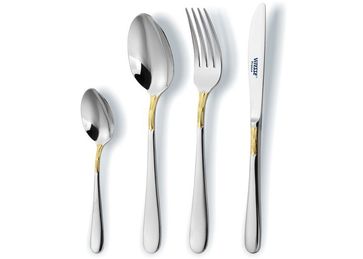 Материал - Нержавеющая сталь 18/10 Толщина ложки, мм - 2,5 мм Толщина вилки, мм - 3,5 мм Вес ножа, гр - 110 гр. Полировка - Зеркальная Декоративные элементы - Позолоченные вставки Упаковка - кейс Размеры упаковки, см - 46,00 х 36,50 х 12,00 Бренд - ViTESSE Продаем в кредит. Более 15 видов оплаты, WM, ЯД. Можно купить без предварительного заказа. Возможен самовывоз. Есть доставка. Доставка: 350.0RUR