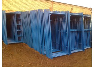 Основная деталь таких лесов - прямоугольная вертикальная рама, изготовленная из тонкостенной стальной трубы. Обычно используются рамы двух видов: с лестницей, и проходная. Рамы крепятся по вертикали соединением "труба в трубу",