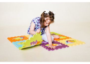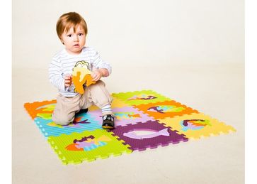 Набор из 9 плиток 30х30х1 см, материал ЭВА.Набор из 9 плиток 30х30х1 см, материал ЭВА.Упакован в полиэтиленовую сумочку на молнии. не имеет запаха, покрытие абсолютно безвредно и экологично;быстро и легко укладывается и так же легко разбирается;создаёт эффект "тёплого пола";покрытие стойко к бытовой химии и влаге, легко чистится и моется;стыкуется с другими наборами и плитками мягкого пола. Ваш ребенок будет с удовольствием собирать большой напольный пазл с изображением обитателей подводного мира. Пазл собирается из девяти деталей, по каждой из которых плывет одна большая рыбка.Благодаря коврику-пазлу, малыш узнает, что рыбы бывают разной формы. Каждую рыбку он сможет достать из коврика наружу и разобрать на 5-6 частей. Малышу будет интересно собирать рыбок на полу, а затем вновь возвращать их внутрь домика-квадрата.Пазл Мозаика с рыбами может также исполнять роль мягкого коврика для ребенка. Пазл сделан из теплоизолирующего материала, и очень приятен на ощупь.Во время игры коврик-пазл Мозаика с рыбами развивает зрительное восприятие ребенка, логическое мышление и мелкую моторику рук, расширяет кругозор, пространственное восприятие, учит малыша складывать картинку из нескольких частей и подбирать подходящие по форме недостающие фрагменты рисунка. Кромки по краям отсутствуют, что дает возможность расширять игровую зону, добавляя плитки из других подобных наборов и плитки мягкого поля, пока хватит фантазии.