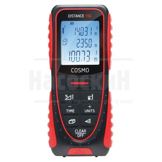 Лазерная рулетка ADA COSMO 100 Лазерный дальномер производства ADA instruments это идеальное решение для Вашего дома или строительного объекта. Купить дальномер Вы можете в нашем магазине. Какую лазерную рулетку выбрать подскажут наши специалисты, оказав грамотную консультацию по подбору, необходимого именно Вам, оборудования. Лазерный дальномер ADA. Купить рулетку Вы можете по телефонам: 8(495)669-39-99 или 8(800)555-12-82 или приехав в один из наших магазинов в Москве или Санкт-Петербурге. В наших шоурумах представлен измерительный инструмент на любой вкус Лазерная рулетка ADA COSMO 100 — это профессиональный лазерный дальномер, особенностью которого является простота и удобство в использовании. Главное достоинство этого профессионального прибора — измерение расстояний при любых условиях освещенности. Даже при ярком солнце ADA COSMO 100 измеряет расстояние до 100 метров с высокой точностью. Максимальная погрешность измерения составляет всего 1,5 миллиметра. Эргономичный дизайн корпуса для удобства измерений. Защитные протекторные накладки расположены в верхней и нижней части прибора. Дальномер удобно лежит в руке. При ударах они защитят корпус от повреждений. Мембранные кнопки управления не боятся пыли и влаги. Дальномер ADA COSMO 100 выполняет быстрое сложение и вычитание, а так же производит автоматическое вычисление площади и объема. Для возможности расчета недоступных для прямого измерения отрезков модель оснащена функцией вычисления расстояния между двумя точками по геометрическим формулам Пифагора. Откидная скоба поможет произвести точные измерения из углов и щелей. Яркий дисплей с постоянной подсветкой. Трехстрочный дисплей с постоянной подсветкой и четкие крупные символы позволяют работать даже в условиях плохой освещенности. Результаты на дисплеи видно под любым углом и при любом свете. ADA COSMO 100 для точных измерений больших расстояний оснащен таймером. ADA COSMO 100 имеет встроенный измеритель угла наклона для расчета недоступных величин.