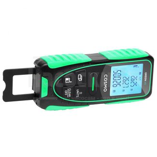 Лазерная рулетка ADA COSMO 60 GREEN Лазерный дальномер производства ADA instruments это идеальное решение для Вашего дома или строительного объекта. Купить дальномер Вы можете в нашем магазине. Какую лазерную рулетку выбрать подскажут наши специалисты, оказав грамотную консультацию по подбору, необходимого именно Вам, оборудования. Лазерный дальномер ADA. Купить рулетку Вы можете по телефонам: 8(495)669-39-99 или 8(800)555-12-82 или приехав в один из наших магазинов в Москве или Санкт-Петербурге. В наших шоурумах представлен измерительный инструмент на любой вкус Лазерная рулетка с функцией уклономера ADA COSMO 60 GREEN — это новый лазерный дальномер с зеленым лазером. Зеленую точку-маркер отлично видно на больших расстояниях до 50 метров. Даже при ярком солнце ADA COSMO 60 GREEN измеряет расстояние до 60 метров с высокой точностью. Максимальная погрешность измерения составляет всего 1,5 миллиметра. Эргономичный дизайн корпуса для удобства измерений. Защитные протекторные накладки расположены в верхней и нижней части прибора. Дальномер удобно лежит в руке. При ударах они защитят корпус от повреждений. Мембранные кнопки управления не боятся пыли и влаги. ADA COSMO 60 GREEN способен передавать данные измерений удобно и быстро с помощью беспроводного канала связи ВТ при использовании мобильного приложения ADA PHOTO PLAN. Дальномер ADA COSMO 60 GREEN выполняет быстрое сложение и вычитание, а так же производит автоматическое вычисление площади и объема. Для возможности расчета недоступных для прямого измерения отрезков модель оснащена функцией вычисления расстояния между двумя точками по геометрическим формулам Пифагора. Откидная скоба поможет произвести точные измерения из углов и щелей. Встроенный уклономер. ADA COSMO 60 GREEN имеет встроенный измеритель угла наклона. ADA COSMO 60 GREEN можно использовать как электронный уровень компактного размера. Яркий дисплей с постоянной подсветкой. Трехстрочный дисплей с постоянной подсветкой и четкие крупные символы позвол