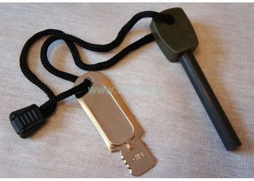 Огниво Savotta Tinderdox Army. Производство Финляндия. В комплекте огниво и металлическое кресало. Огниво - приспособление для производства искр, которые в свою очередь воспламеняя какой либо горючий материал (трут) помогают добыть огонь. Температура получаемых искр около 3000 градусов С. В грамотно собранных наборах выживания должно быть предусмотрено как минимум два дублирующих друг друга средства для добычи огня. Например основное - спички или зажигалка, а огниво любого вида - в качестве запасного. Очень просто и быстро разжечь костер одним движением руки "чиркнув" спичкой или воспользовавшись зажигалкой, но это только когда они в работоспособном состоянии. А ведь зажигалка, как и любое механическое устройства, может сломаться, и чем больше в ней составных частей, тем выше вероятность поломки. Спички могут просто закончится или намокнуть и потерять свои свойства. Ну а огниво? А что огниво... оно безотказно, его только надо научиться правильно применять. Больше практики, и в любой ситуации без огня вы не останетесь. Немного советов:
