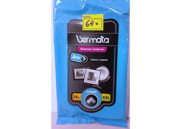 - Влажные салфетки VERMATA для стекол и зеркал (упаковка 24 шт) по выгодной цене 64 р. руб.;