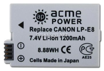 - Аккумулятор CANON LP-E8 (AcmePower) по выгодной цене 931 р. руб.;