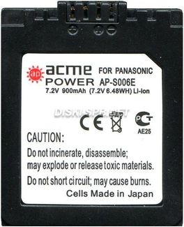 - Аккумулятор PANASONIC CGR-S006 (AcmePower) по выгодной цене 1 076 р. руб.;