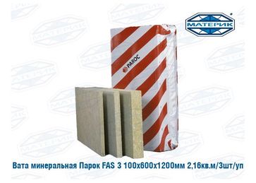 - Вата минеральная Парок FAS 3 100х600х1200мм 2,16кв.м 3шт уп по выгодной цене 1 233 р. руб.;
