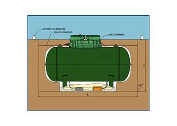 Подземные резервуары для хранения сжиженных газов СУГ (LPG), называются газгольдерами. Газгольдеры Antonio Merloni покрыты тремя слоями краски на основе эпоксидной смолы и высушенной в специальной камере по запатентованной технологии. Эпоксидное покрытие защищает резервуар от химического и механического повреждения ёмкости.