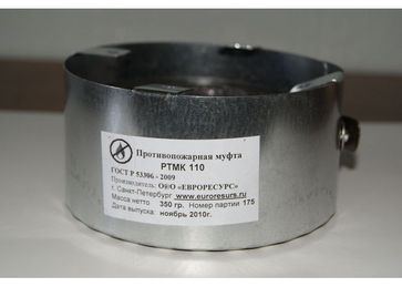 ООО Евроресурс производит и продает противопожарные муфты РТМК с вкладышем из огнезащитного материала для полимерных труб в системах внутреннего водоснабжения и канализации. Противопожарные муфты РТМК изготавливаются для труб диаметром от 20 до 350 мм (110 мм, 50 мм, 160 мм, 32 мм, 225 мм, 25 мм, 40 мм, 80 мм, 125 мм, 250 мм), а также других диаметров по требованию Заказчика и предназначены для предотвращения проникновения огня через проемы и отверстия в стенах и перекрытиях и локализации пожара. Противопожарные муфты РТМК имеют все необходимые разрешения и сертификаты. Предел огнестойкости- 240 мин., включая муфты больших диаметров.
