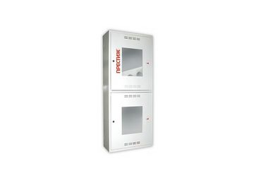 Шкаф пожарный Престиж-03-НОБ Предназначен для размещения комплекта пожарного крана Dy 50 или Dy 65 (с угловым клапаном) и огнетушителей общей массой до 30 кг.