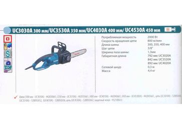 - Пила цепная MAKITA UC4030A (2000Вт, 40см, 4.2кг, автом.смазка) по выгодной цене 5 800 р. руб.;