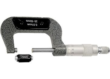 Микрометр изготовлен из инструментальной стали. Имеет форму скобы. Основным рабочим элементом является микрометрическая головка. Упакован в пластмассовый кейс. Предназначен для особо точных измерений. None Страна производства: Китай