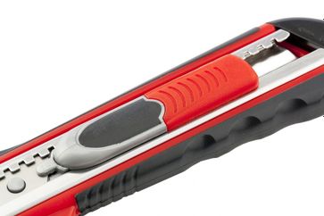 Нож с выдвижным сегментированным лезвием предназначен для резки различных материалов, таких как бумага, картон, линолеум, кожа и т.д. Характеристики:Корпус : Двухкомпонентный (пластик, резина)Направляющая: МеталлШирина лезвия: 18 ммУпаковка: БлистерСмена лезвия: Производится через хвостовую часть ножаПреимущества: Благодаря функции QUICK BLADED лезвие выдвигается на необходимую длину и автоматически возвращается в корпус ножа при прекращении использования). эргономичная двухкомпонентная рукоятка. None Страна производства: Китай
