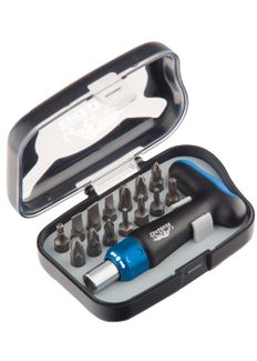 Т-образная отвёртка с набором бит, изготовленных из S2 стали. Двухкомпонентная, эргономичная рукоятка. Реверсивный механизм позволяет заворачивать и отворачивать крепёж, не перехватывая ручку. В комплект входят: биты с профилем PH1, PH2, PH3, PZ1, PZ2, PZ3, SL4.5, SL5.5, SL6.5, T9, T10, T15, T20, H3. Твёрдость бит: 60 HRC. None Страна производства: Тайвань