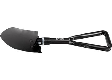 Универсальная штыковая складная лопата с заостренным металлическим ковшом 150 х 200 мм и складным двухсекционным металлическим черенком 380 мм. На черенке имеется резьбовой зажим, надежно фиксирующий инстру- мент в необходимом для работы положении. Поставляется в комплекте с ней- лоновым чехлом для удобства транспортировки и хранения. Предназначена для многоцелевого использования в походных условиях. Зуб- цы на одной из сторон ковша позволяют использовать инструмент в качестве пилы. Если повернуть ковш на 90° и закрепить его зажимом, лопату можно ис- пользовать в качестве мотыжки. Изготовлена из инструментальной стали У8 и закалена. Окрашена порошковой эмалью для защиты от коррозии. None Страна производства: Китай
