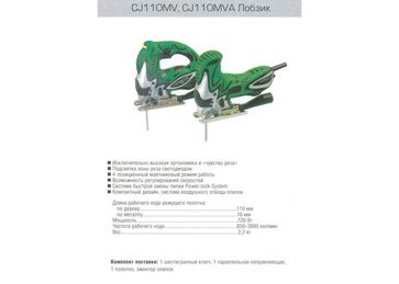 - Лобзик электрический Hitachi CJ110MV (720Вт, 110мм, 2.2 кг, кейс) по выгодной цене 4 450 р. руб.;